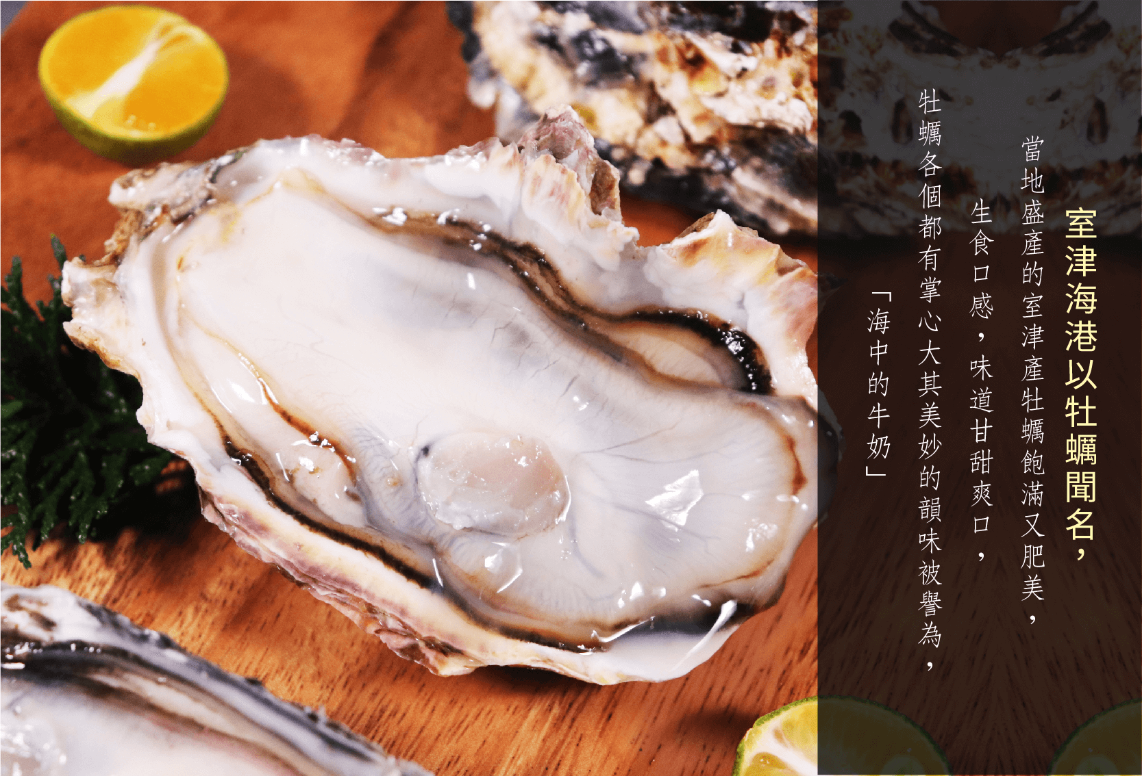 室津海港以牡蠣聞名,當地盛產的室津產牡蠣飽滿又肥美,就算是生吃也甘甜爽口,牡蠣各個都有掌心大其美妙的韻味被譽為「海中的牛奶」